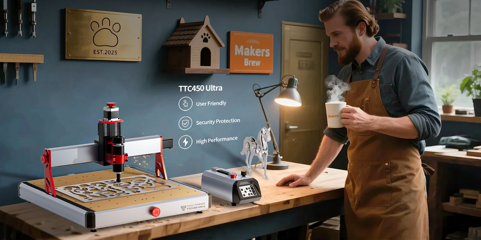 Twotrees TTC450 Ultra CNC Router Machine + Vaccum Cleaner M1 + Cooling Kit + End Mills