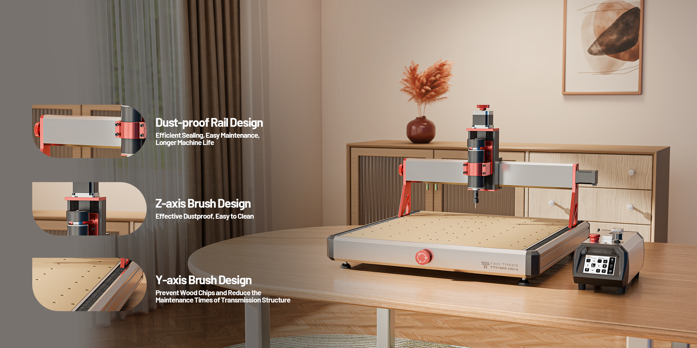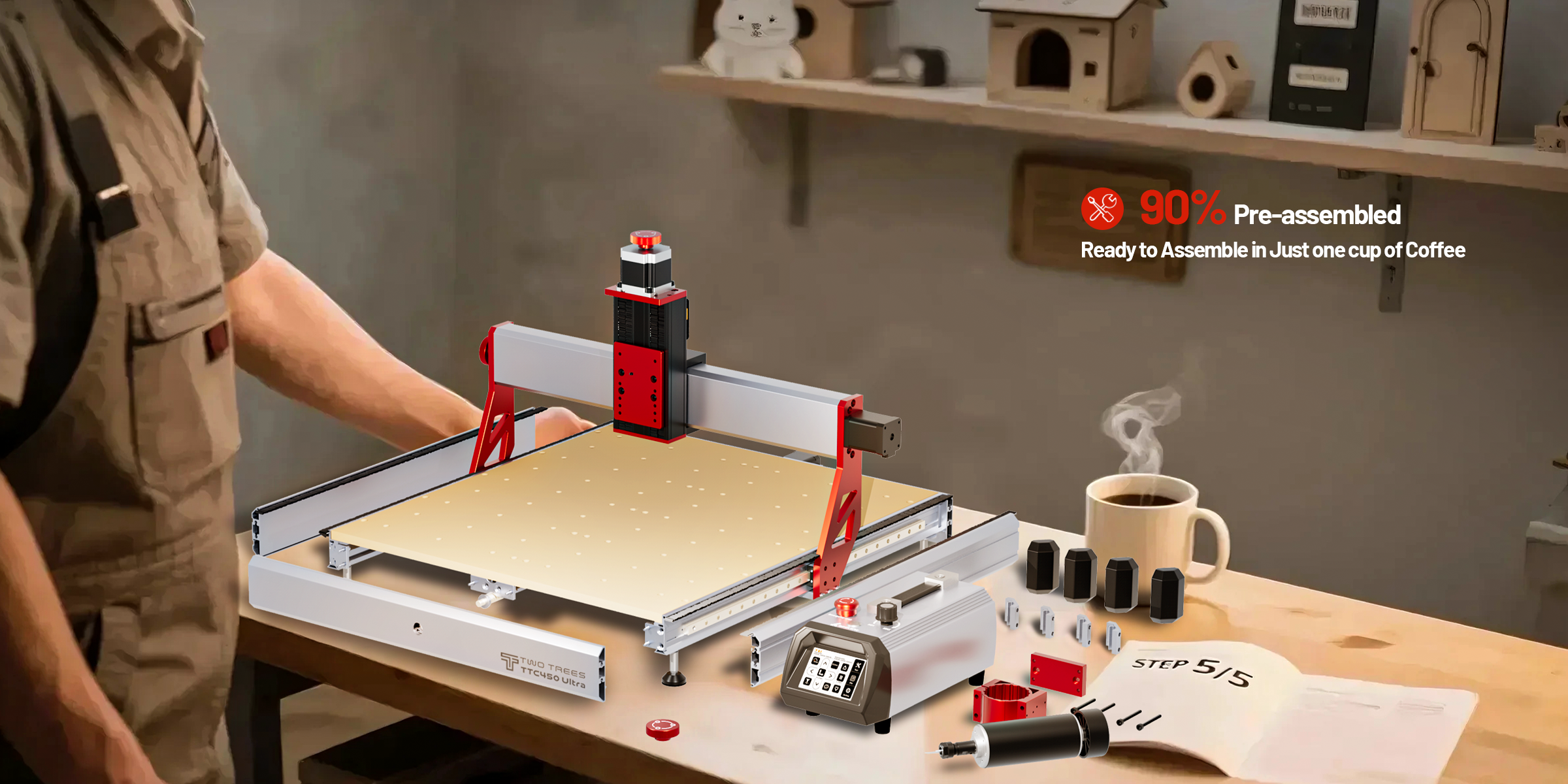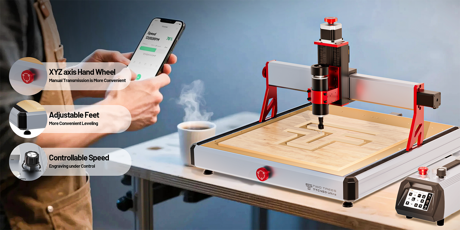 Twotrees TTC450 Ultra CNC Router Machine + 4th Axis + Vacuum Cleaner M1