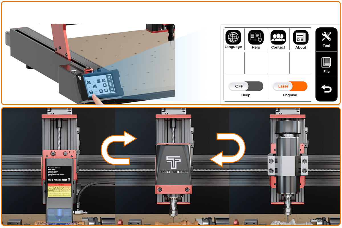 Lets you swap spindles to match your project's needs.Whether you’re carving fine details or cutting tough materials,enjoy smooth, precise results with the right spindle for every task.