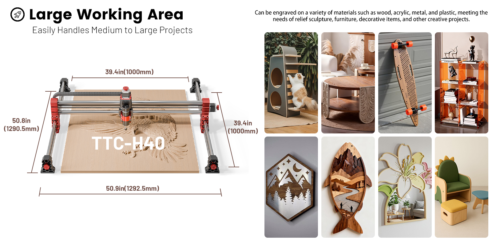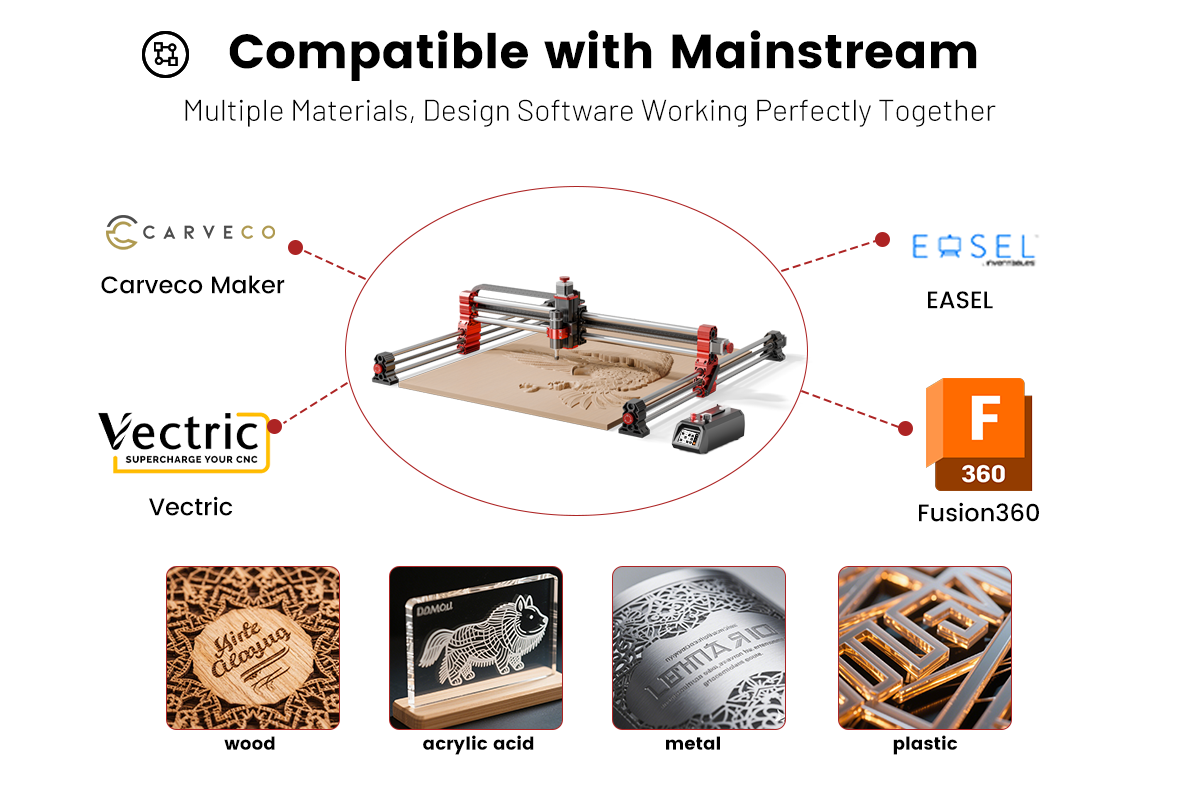 Plywood, MDF, Solid Wood, Acrylic, Carbon Fiber, Aluminum,Copper, Stainless Steel